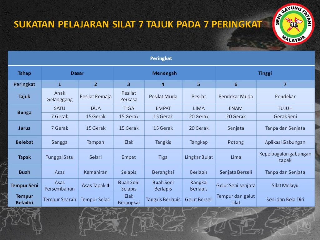 7 Peringkat Pembelajaran pula melambangkan perjalanan seorang pesilat:
